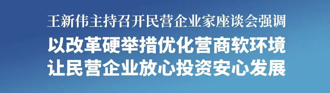 王新伟指出,党的十八大以来,习近平总书记高度重视民营经济发展,多次强调“两个毫不动摇”“三个没有变”“两个健康”等大政方针,为我们促进民营经济发展指明了前进方向、提供了根本遵循。全省政府系统要切实把思想和行动统一到习近平总书记关于民营经济发展的重要论述上来,保持战略定力,坚定发展信心,坚定不移支持民营经济发展壮大,以实际行动坚定拥护“两个确立”、坚决做到“两个维护”。